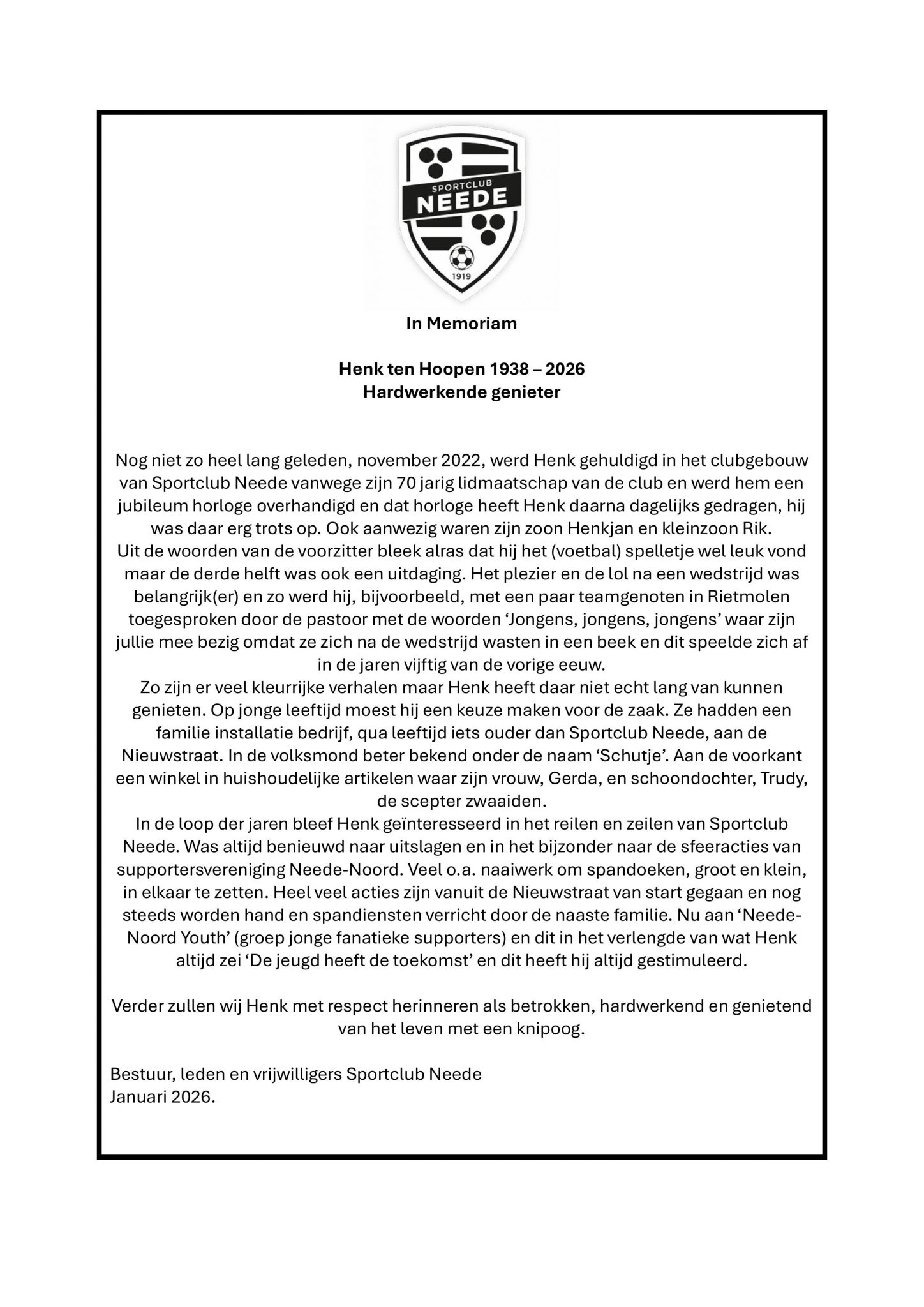 Henk ten Hoopen 1938 – 2026