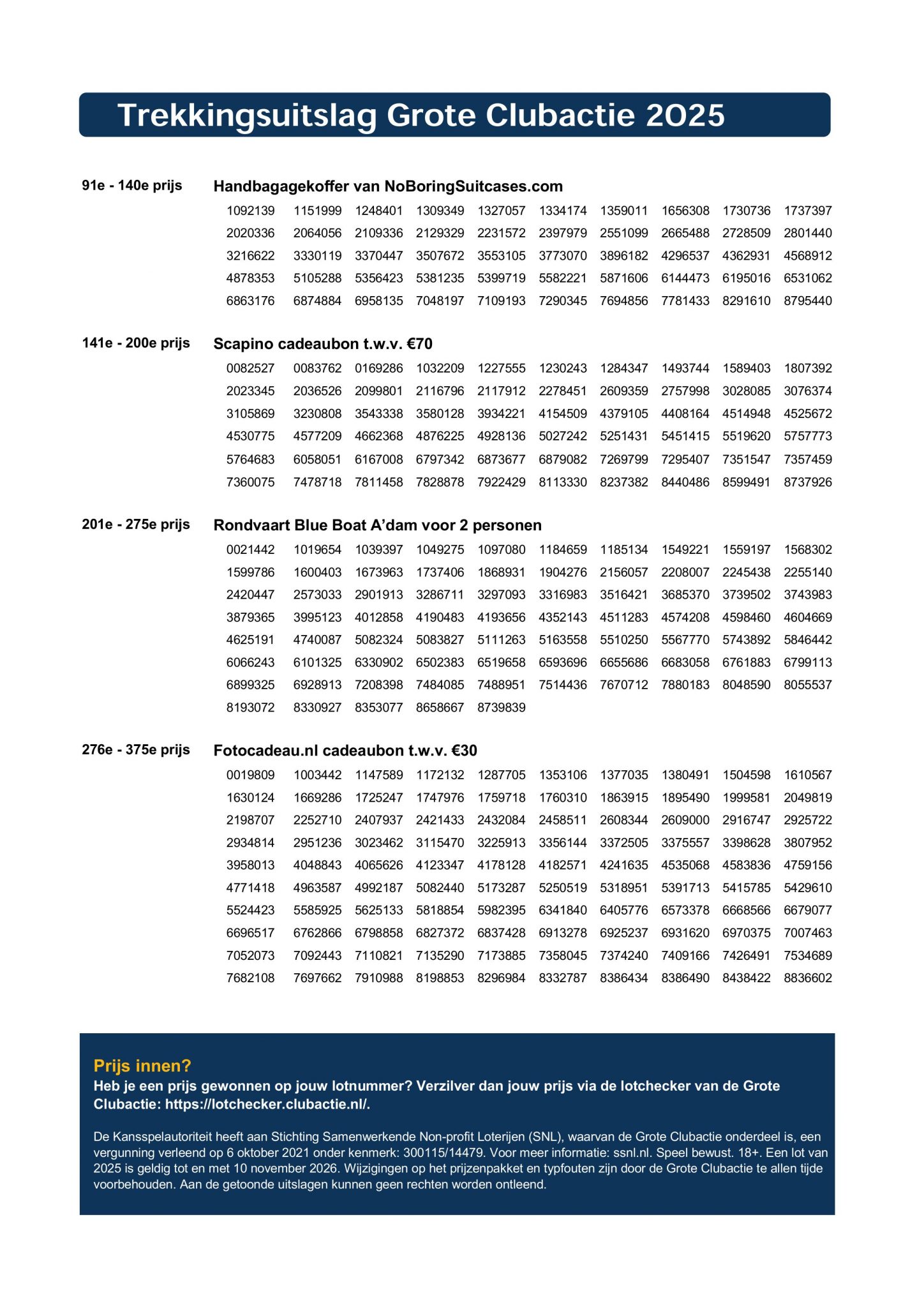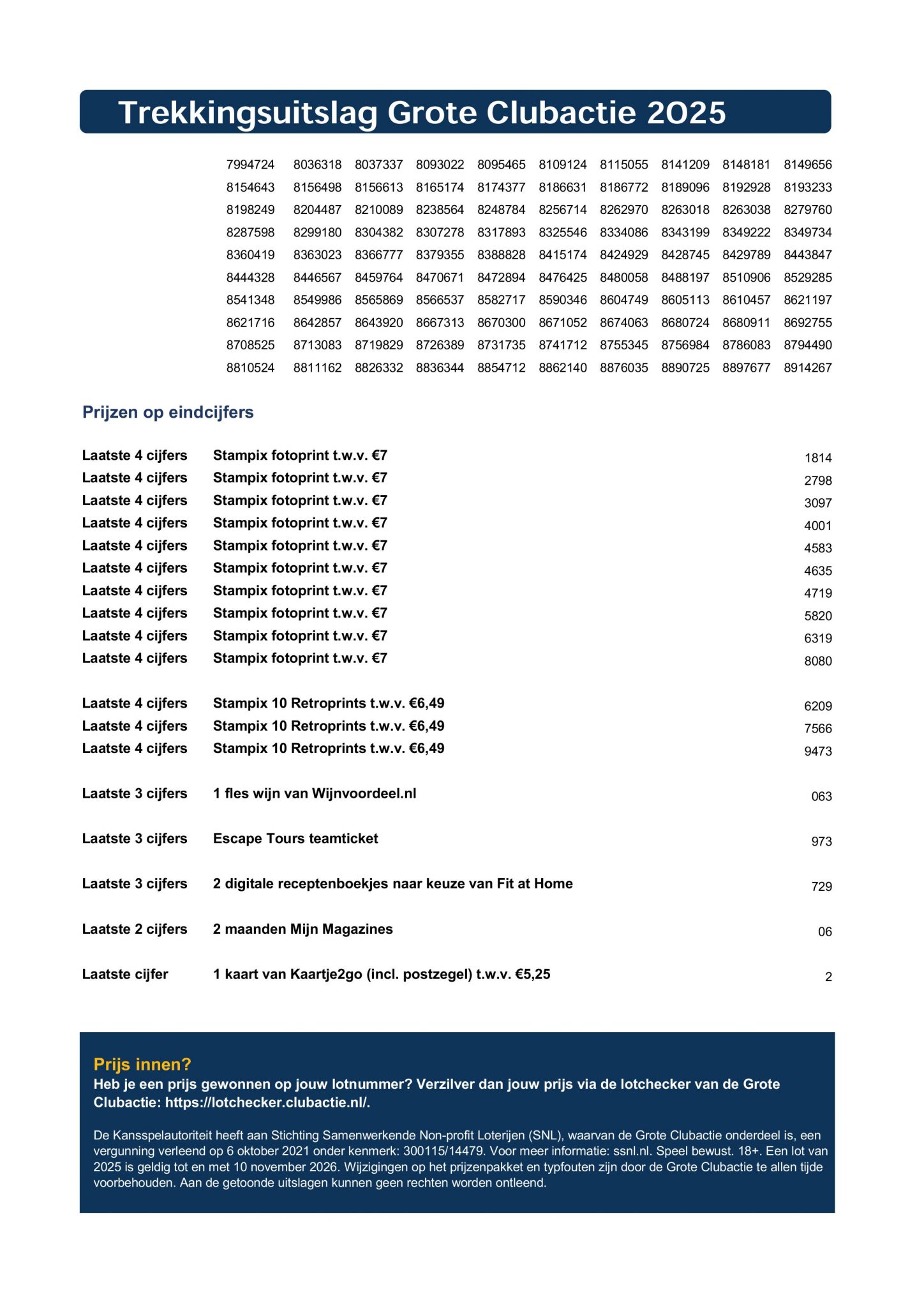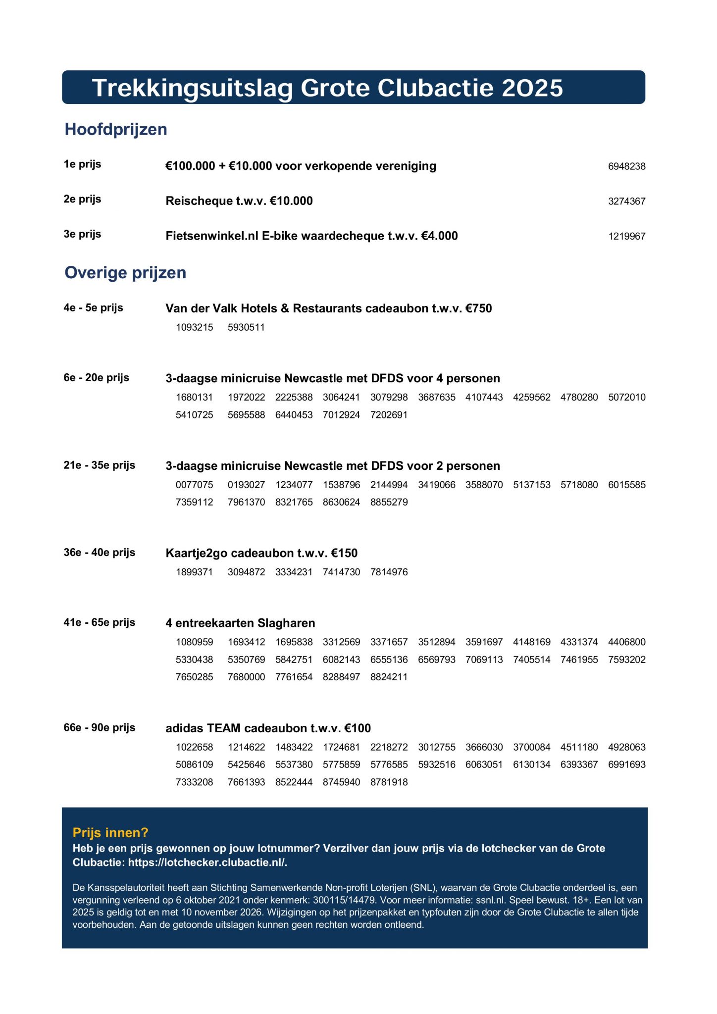 Trekkingsuitslag Grote Clubactie 2025